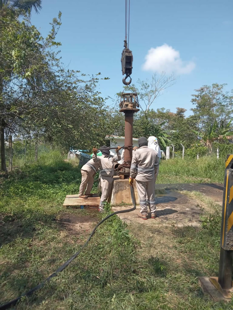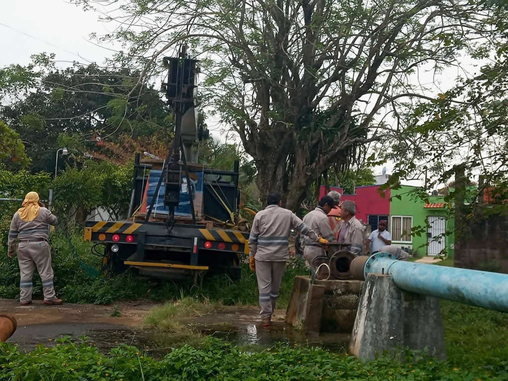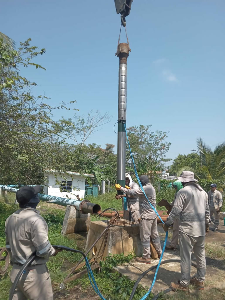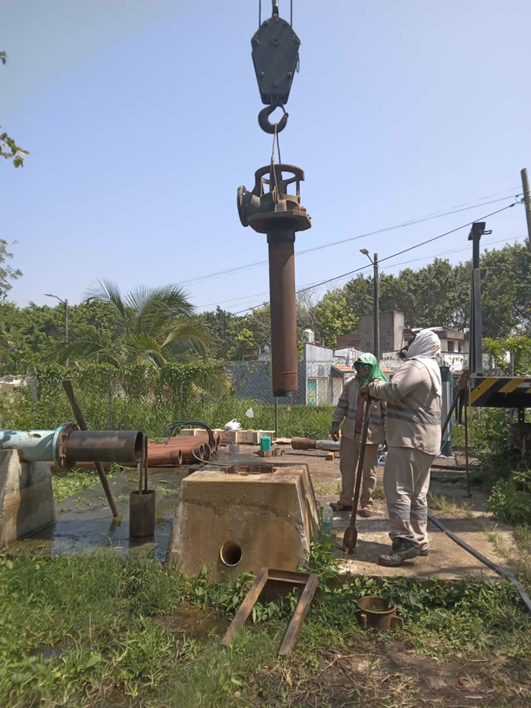 La Comisión Municipal de Agua Potable y Saneamiento de Coatzacoalcos (CMAS), efectúa la instalación de un nuevo equipo de bombeo en el Pozo 11 de Canticas, infraestructura estratégica que alimenta la línea de conducción de 18 pulgadas y que permitirá fortalecer el suministro de agua potable en el poniente de la ciudad.
