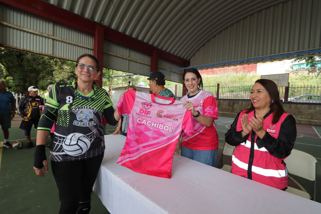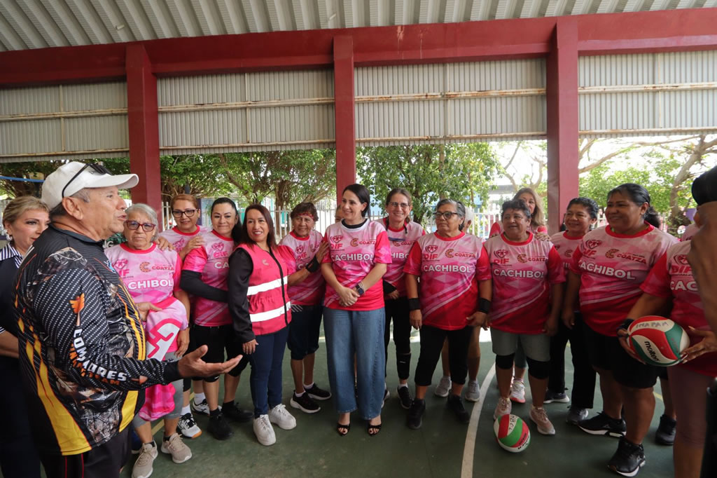Este miércoles la presidenta del DIF Coatzacoalcos, Sonia Marie, visitó el Centro de Día del Adulto Mayor (CAM) para cumplir la promesa hecha a los integrantes de los equipos femenil y varonil de cachibol: entregar los uniformes deportivos que habían solicitado.