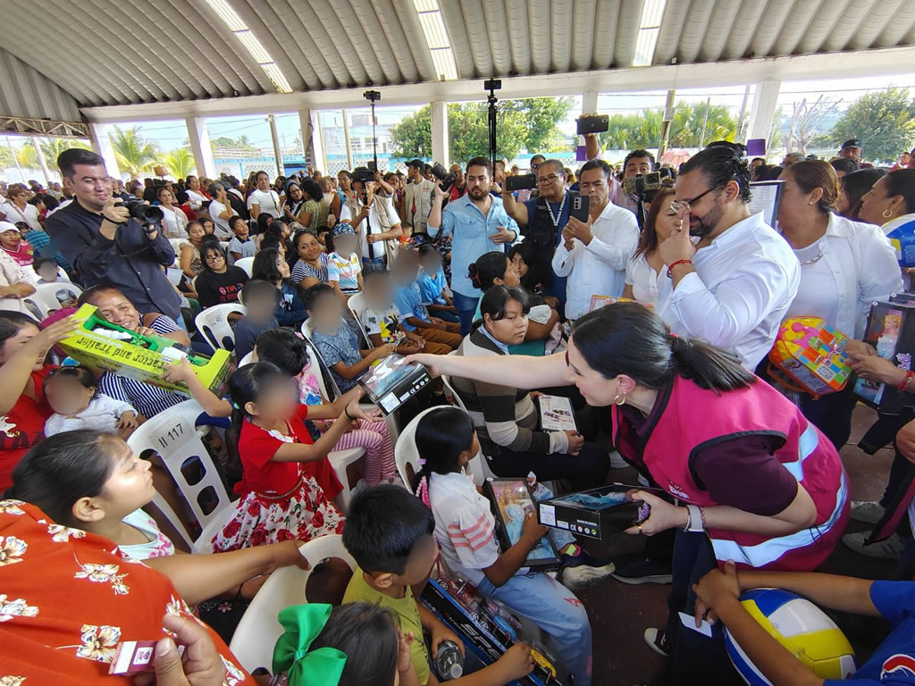 Dentro del marco conmemorativo del Día de Reyes, la presidenta del DIF Coatzacoalcos, Sonia Marie Salvador Goraieb, celebró este lunes a niñas y niños de Villa Allende con una magna fiesta en donde hubo rifas de regalos y el corte de la tradicional rosca.
