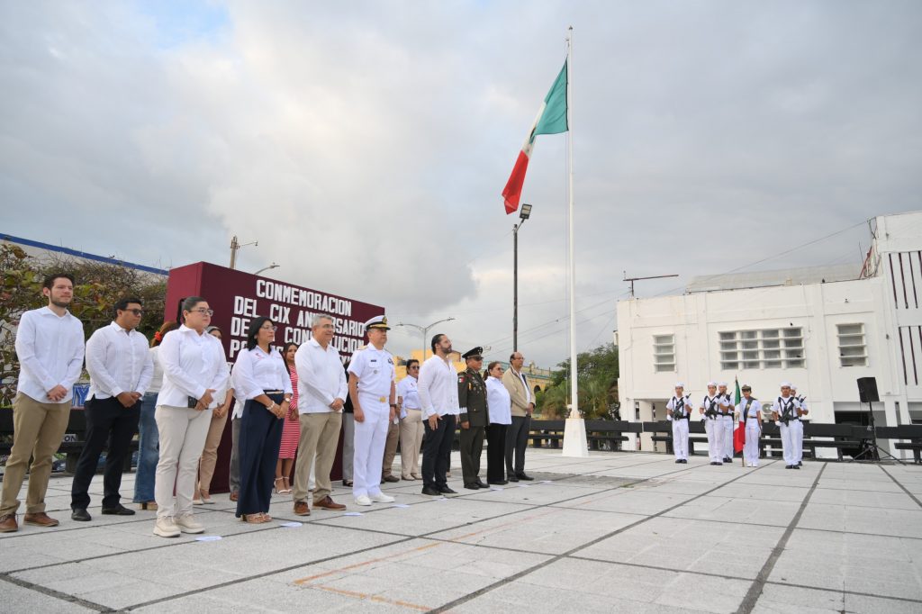 Durante el acto cívico se rindieron honores al Lábaro Patrio y se entonó el Himno Nacional Mexicano, a cargo de la banda de guerra y escolta de la Tercera Zona Naval, en un ambiente de respeto y unidad.