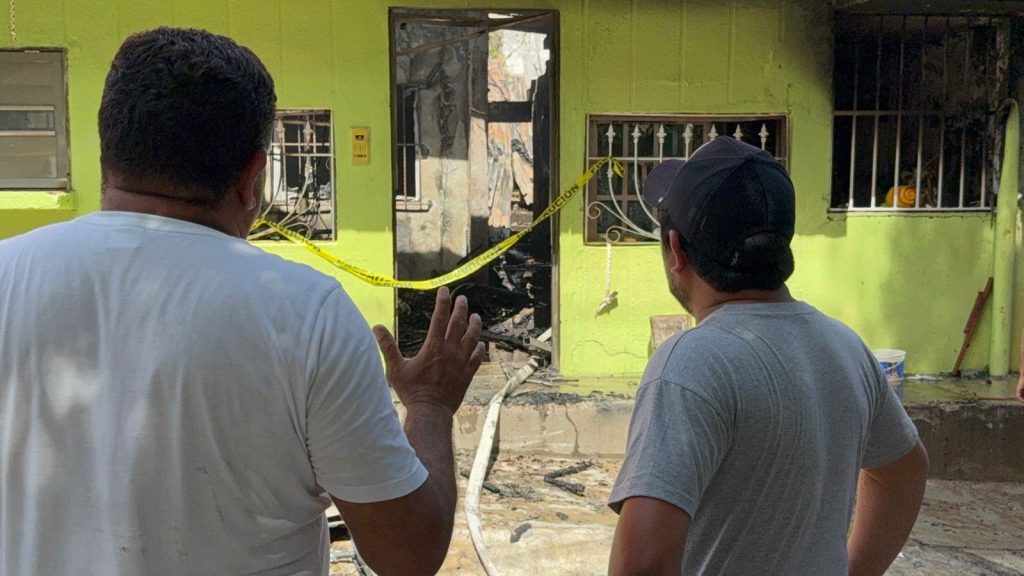 Durante las labores, lograron extraer del interior del domicilio dos tanques de gas que representaban un riesgo adicional, así como láminas de zinc, mientras que el material de tapicería quedó totalmente incinerado.