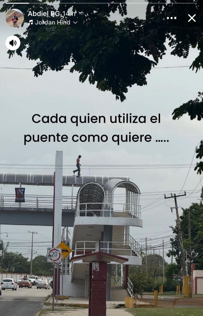 De acuerdo con los datos recabados, el varón sube cotidianamente al puente, trepa por los tubos del toldo y se expone al sol, camina y se acuesta sobre el mismo, haciendo acrobacias y desafiando la gravedad.