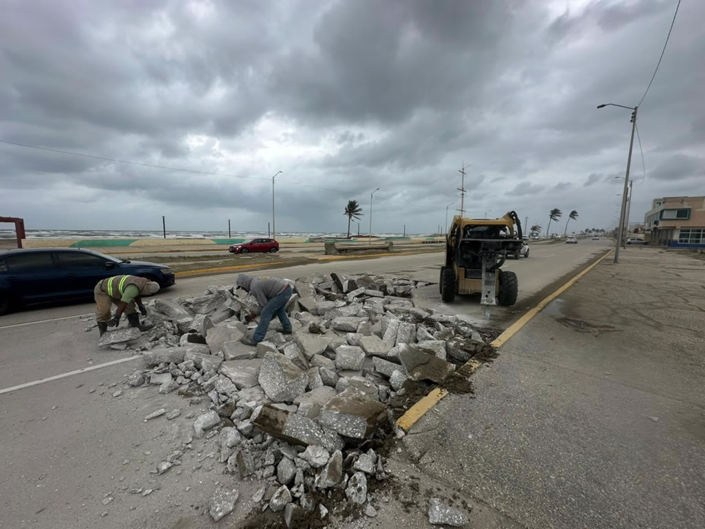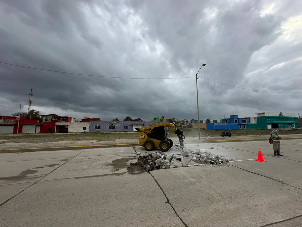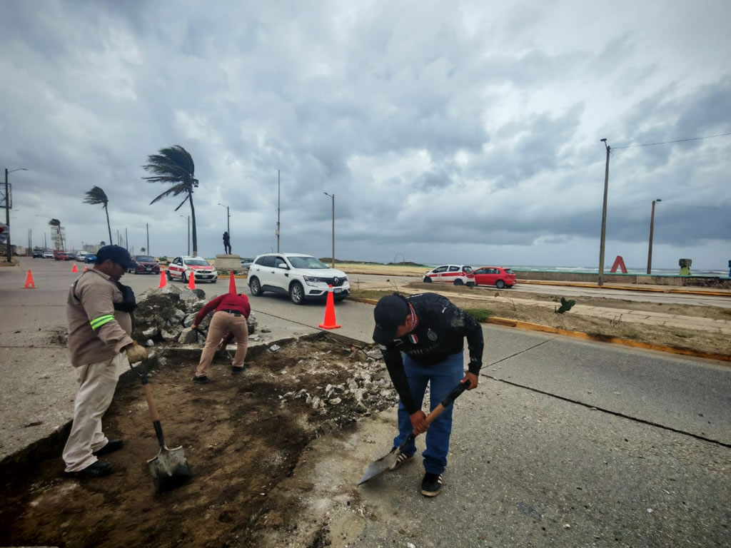 Una de las acciones más visibles es la rehabilitación de la carpeta de rodamiento del malecón costero, desde la avenida Álamo hasta el Hemiciclo a los Niños Héroes, a la altura de Venustiano Carranza, una zona estratégica tanto para la actividad turística como para la movilidad urbana.