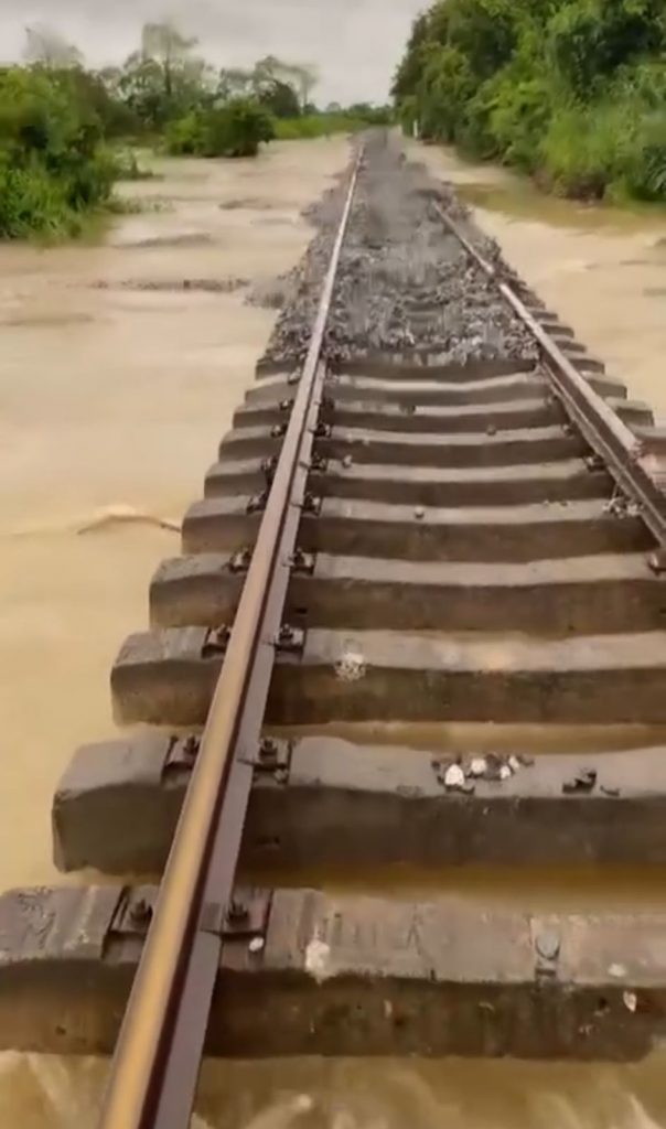 En redes sociales se difundió un video de la gravedad de los daños, pues prácticamente la corriente del agua movía los durmientes y las vías del tren.
