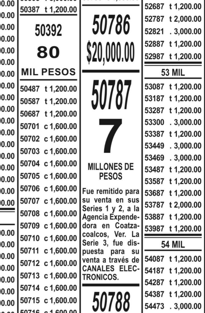 Dicho monto corresponde al billete 50787 y las dos primeras series se vendieron en una agencia de Coatzacoalcos, mientras que la tercera se vendió en línea.