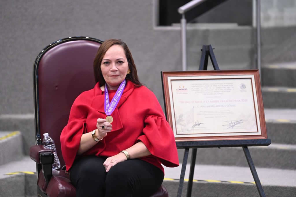 En Sesión Solemne, el Pleno de la LXVII Legislatura, la gobernadora del estado de Veracruz, Rocío Nahle García, y la presidenta del Poder Judicial de la entidad, magistrada Rosalba Hernández Hernández, entregaron la medalla Premio Estatal a la Mujer 2026 a la ciudadana Ana María Autrán Gómez en reconocimiento a su labor científica y práctica médica enfocadas a curar diferentes tipos de cáncer, a las que ha dado difusión mediante la publicación de artículos en revistas especializadas.