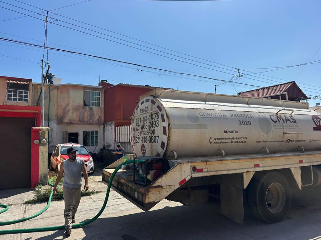 Ante la falta de agua registrada en algunas colonias del poniente de la ciudad, la Comisión Municipal de Agua y Saneamiento (CMAS) activó un operativo emergente de distribución de agua potable mediante pipas.