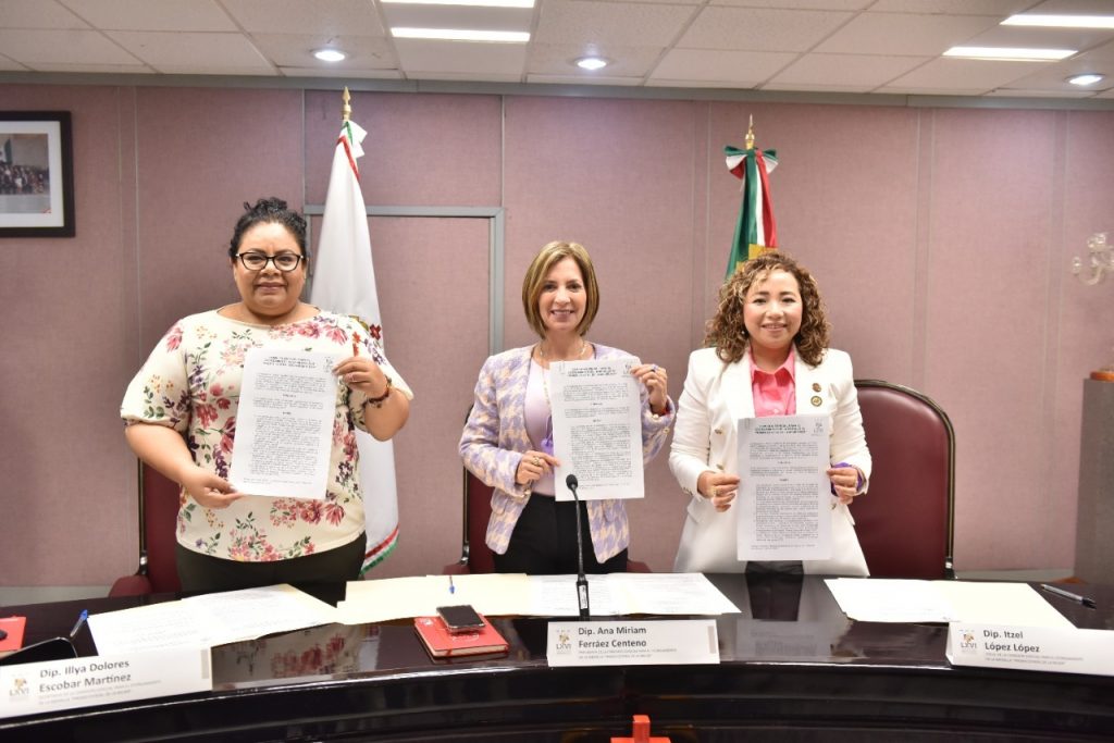 Reunidas en la Sala “Venustiano Carranza” del Palacio Legislativo, las diputadas Ana Miriam Ferráez Centeno, presidenta, Illya Dolores Escobar Martínez, secretaria, e Itzel López López, Itzel Yescas Valdivia, Arianna Guadalupe Ángeles Aguirre, Tania María Cruz Mejía y Maribel Ramírez Topete, vocales, celebraron sesión en la que firmaron el acta de instalación de la Comisión, y posteriormente presentaron y signaron la convocatoria.