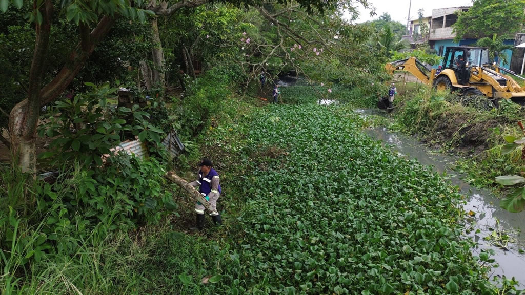 Las acciones incluyeron el retiro de lirio acuático y grandes volúmenes de residuos sólidos como plástico, unicel, latas, bolsas e incluso muebles abandonados, lo que evidenció años de acumulación en estos espacios. Asimismo, se eliminaron obstrucciones para restablecer el flujo adecuado del agua hacia el río, conforme al funcionamiento del sistema hidráulico.