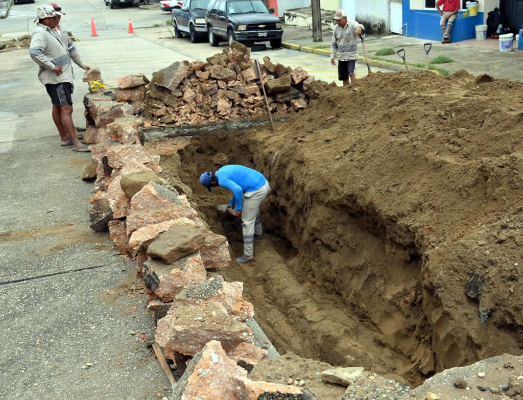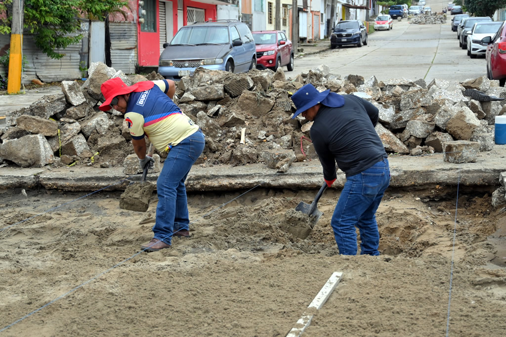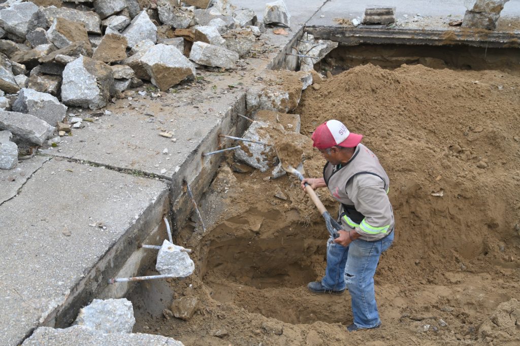 Personal de la Dirección de Obras Públicas, a través del área de Infraestructura Urbana, realiza trabajos integrales de rehabilitación de vialidades, atendiendo el drenaje sanitario que, debido al paso de los años colapsa y provoca socavones, representando un riesgo para la población.