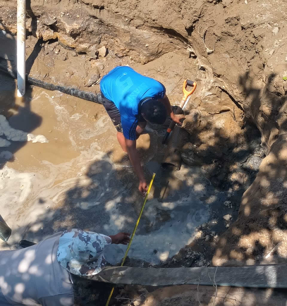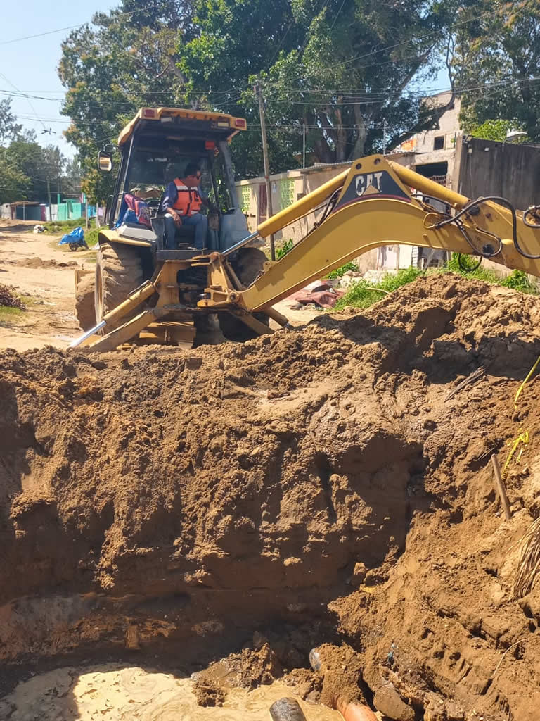 De primera instancia se efectuó la reparación de una descarga domiciliaria y de la línea de drenaje sanitario en la calle Malpica, entre Gloria Corrales y Pedro Infante, de la colonia Emiliano Zapata.