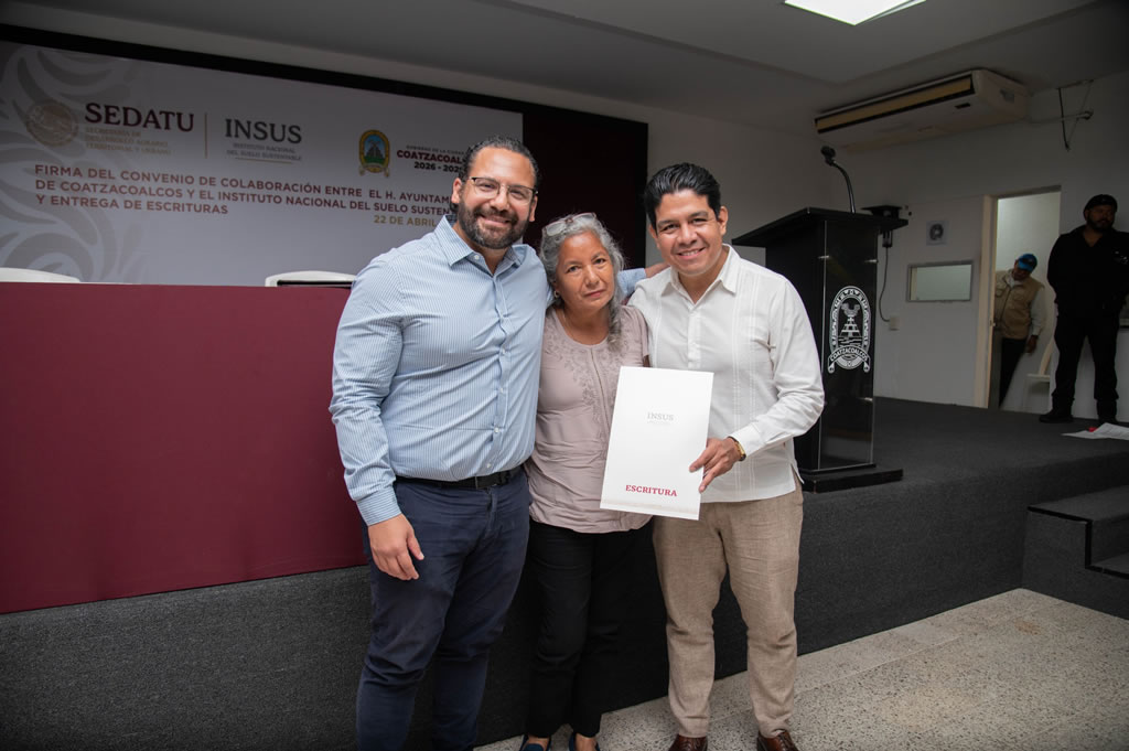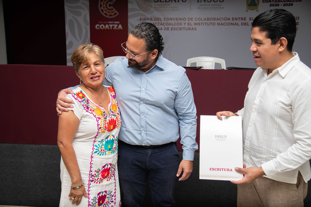Un total de 31 familias de Coatzacoalcos y Villa Allende recibieron sus escrituras, algunas tras más de dos décadas de espera, como parte de una estrategia de regularización impulsada por el Gobierno Municipal en coordinación con el Instituto Nacional del Suelo Sustentable (INSUS) que incluyó la firma de colaboración entre ambas dependencias.