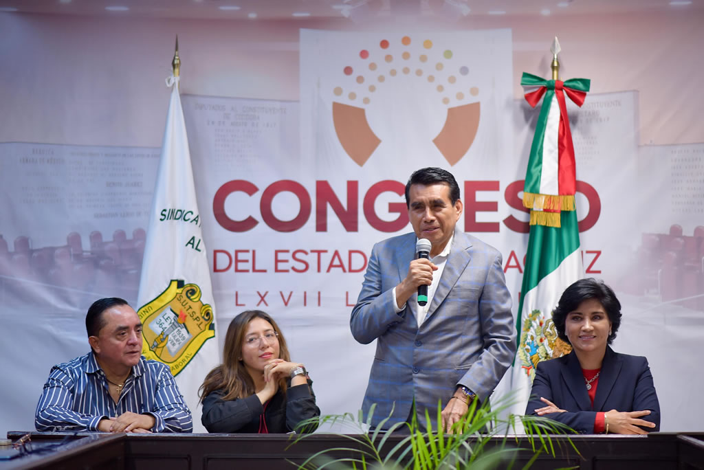 También, el secretario general del SUTSPL, José de Jesús Rodríguez, expresó su agradecimiento a la gobernadora Rocío Nahle García y a los notarios del estado, y reconoció la labor, disposición y voluntad de las diputadas y los diputados para coadyuvar en la mejora de la vida de las y los trabajadores del Congreso.