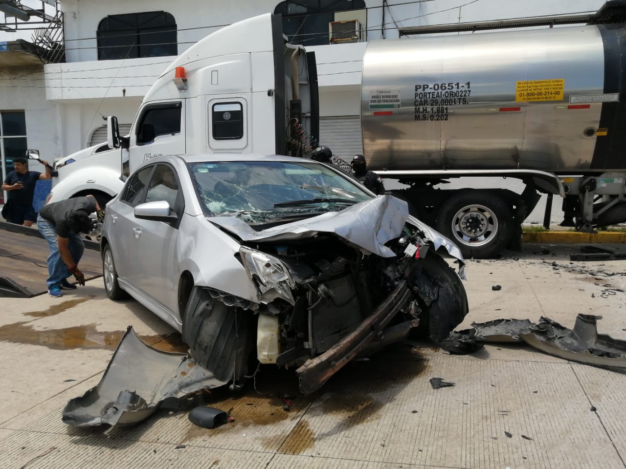 Inicialmente un automóvil Nissan tipo Sentra, de color gris, con placas YHW-4638 del estado de Veracruz,  se extrelló contra un trailer Kenworth, de doble remolque tipo autotanque, que se contraba estacionado de manera correcta en ese punto de la carretera.