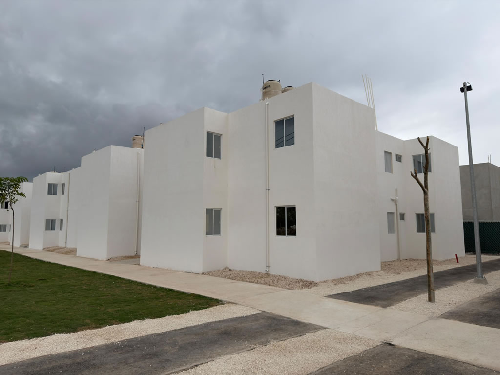 Las viviendas fueron construidas por el Infonavit como parte del Programa de Vivienda para el Bienestar y forman parte de un conjunto de 2 mil 608 viviendas ubicado en el desarrollo San Marcos. Estas viviendas cuentan con una extensión de 60 metros cuadrados, dos habitaciones, sala, comedor, áreas verdes, cuenta con supermercados cerca.
