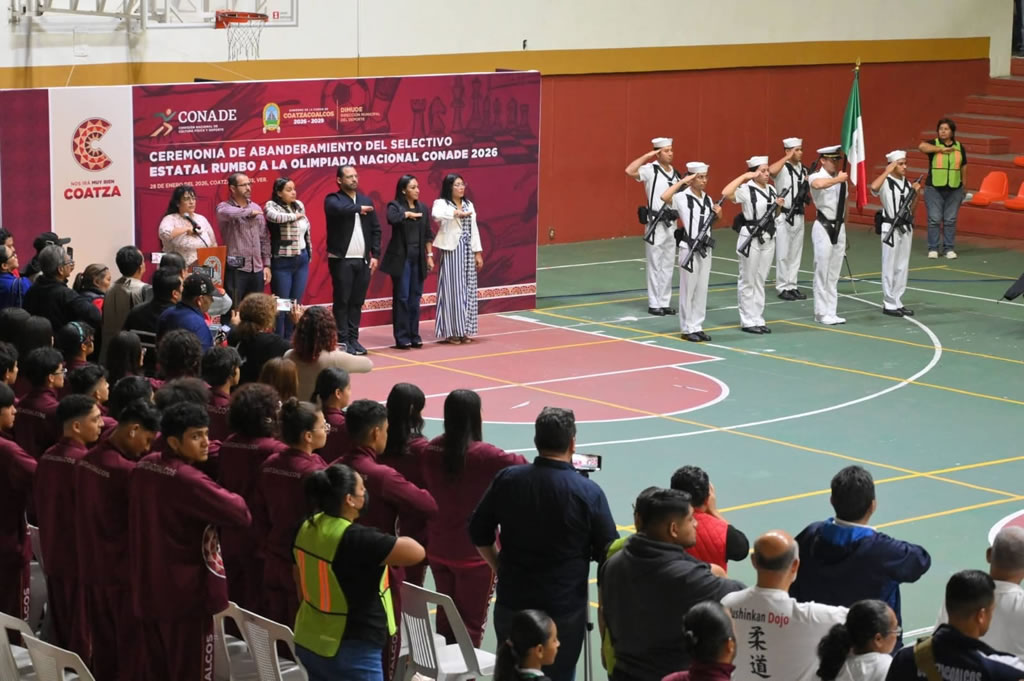 “Coatzacoalcos está orgulloso de ustedes”, dijo el alcalde, Pedro Miguel Rosaldo García, a los 520 deportistas locales del selectivo estatal que este día fueron abanderados por la autoridad municipal rumbo a su participación en la Olimpiada Nacional Conade 2026.