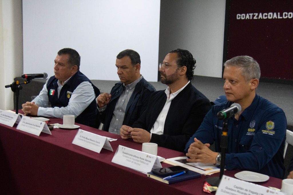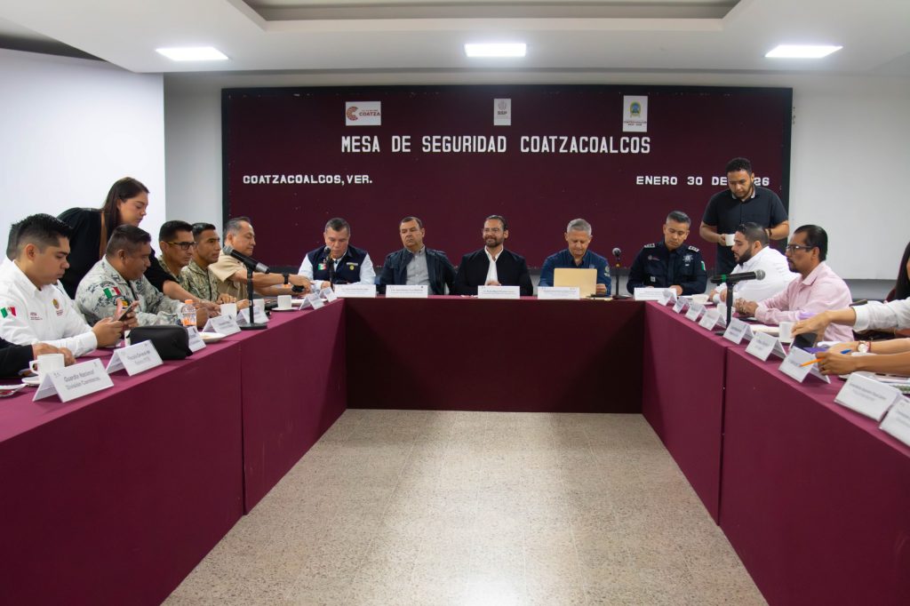 El secretario de Seguridad Pública de Veracruz, Alfonso Reyes Garcés, y el alcalde, Pedro Miguel Rosaldo García, presidieron la Mesa de Coordinación por la Paz en Coatzacoalcos, donde se anunció el reforzamiento de la seguridad con mayor presencia de patrullas y elementos de la SSP.