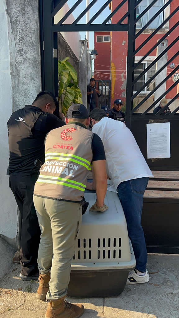 La diligencia fue posible gracias a una denuncia presentada por el Ayuntamiento de Coatzacoalcos, a través de la Jefatura de Protección, Sanidad y Control Animal, derivada de un reporte ciudadano. Tras la judicialización de la carpeta de investigación, se obtuvo y ejecutó la orden de cateo correspondiente.