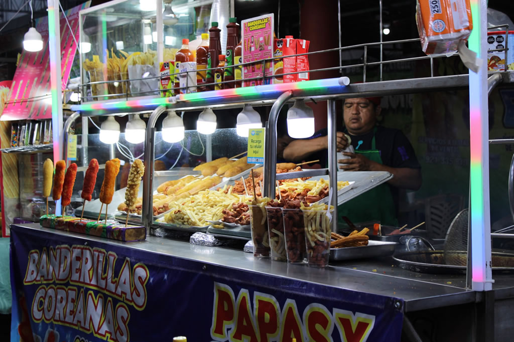 Para quienes buscan algo más sustancioso, la oferta no decepciona: tacos, pizzas, empanadas, tlayudas, salbutes, hamburguesas, hot dogs, alitas, boneless y gorditas de nata forman parte del festín que se puede acompañar con aguas frescas de distintos sabores y hasta el tradicional popo.