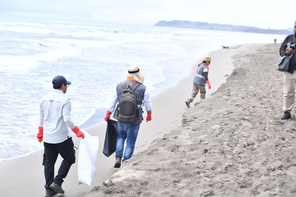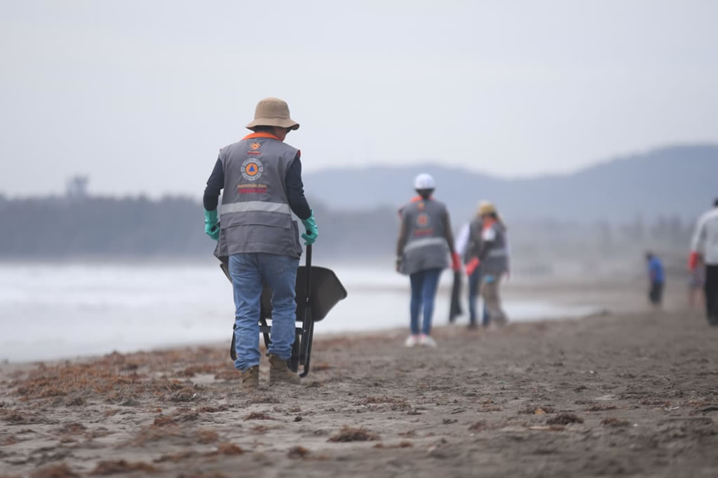 Desde temprana hora, brigadas integradas por 66 personas recorren un tramo aproximado de 2 kilómetros de costa, donde realizan labores de recolección de residuos, como parte de un operativo que se ha sostenido durante cuatro días consecutivos, registrando una disminución progresiva en la presencia de trazas de hidrocarburos.