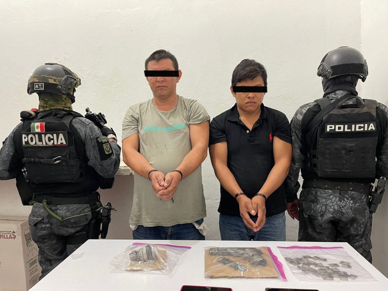 Enrique Burgos. Elementos de la Policía Municipal de San Juan Evangelista detuvo a dos sujetos que traían diversas dosis de droga, así como una granada y un arma de fuego. El hecho se presentó este martes 12 de agosto luego de que la corporación recibió el reporte de presencia de sujetos sospechosos en la comunidad