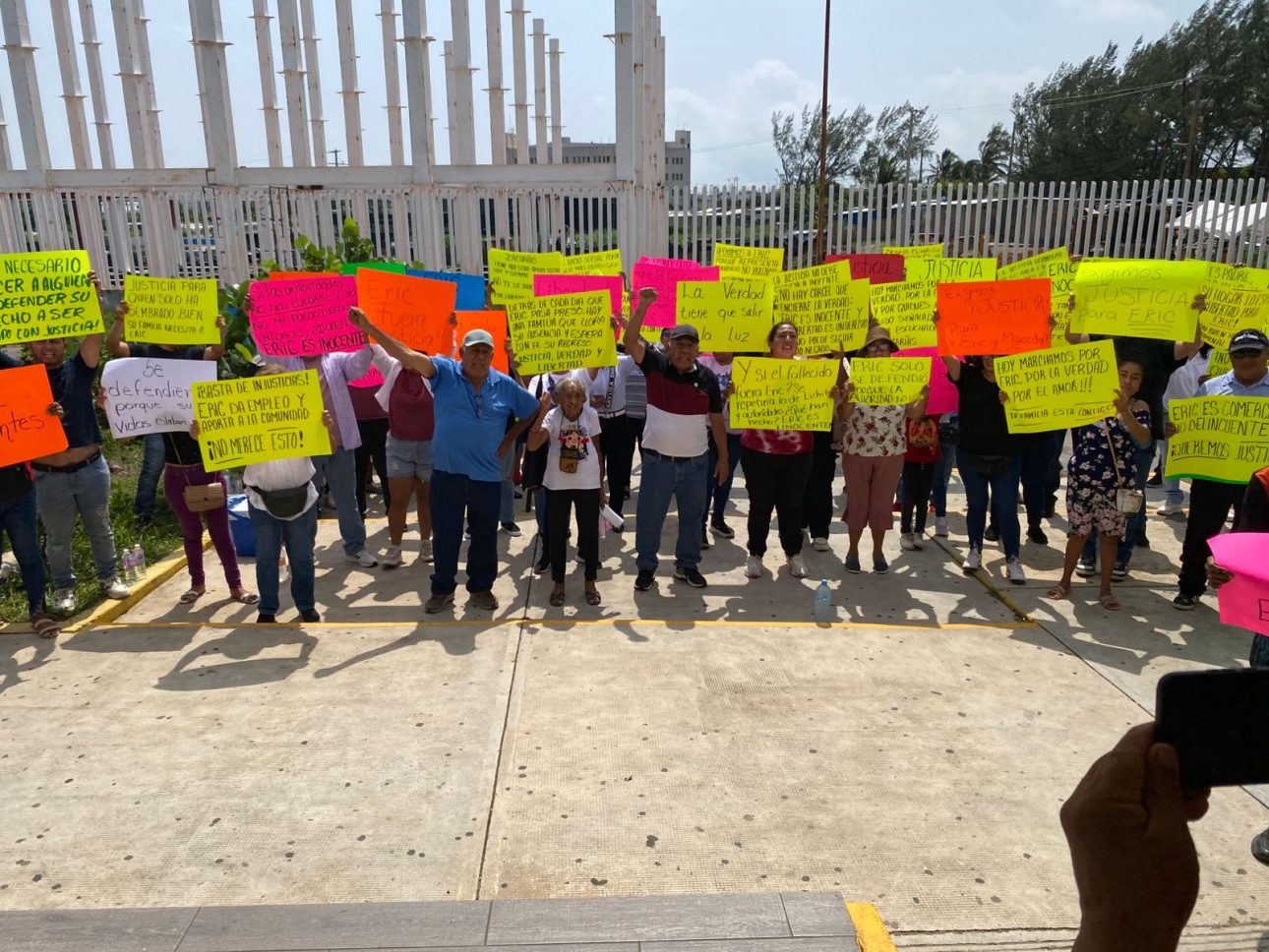 Enrique Burgos. Familiares de Eric “N” el comerciante que habría ordenado a su escolta disparar contra Héctor González León en Nanchital, se manifestaron exigiendo su liberación de la imputación por homicidio doloso por parte de la Fiscalía General del Estado (FGE). Los inconformes llegaron hasta el Centro Integral de Justicia al poniente de Coatzacoalcos, señalaron