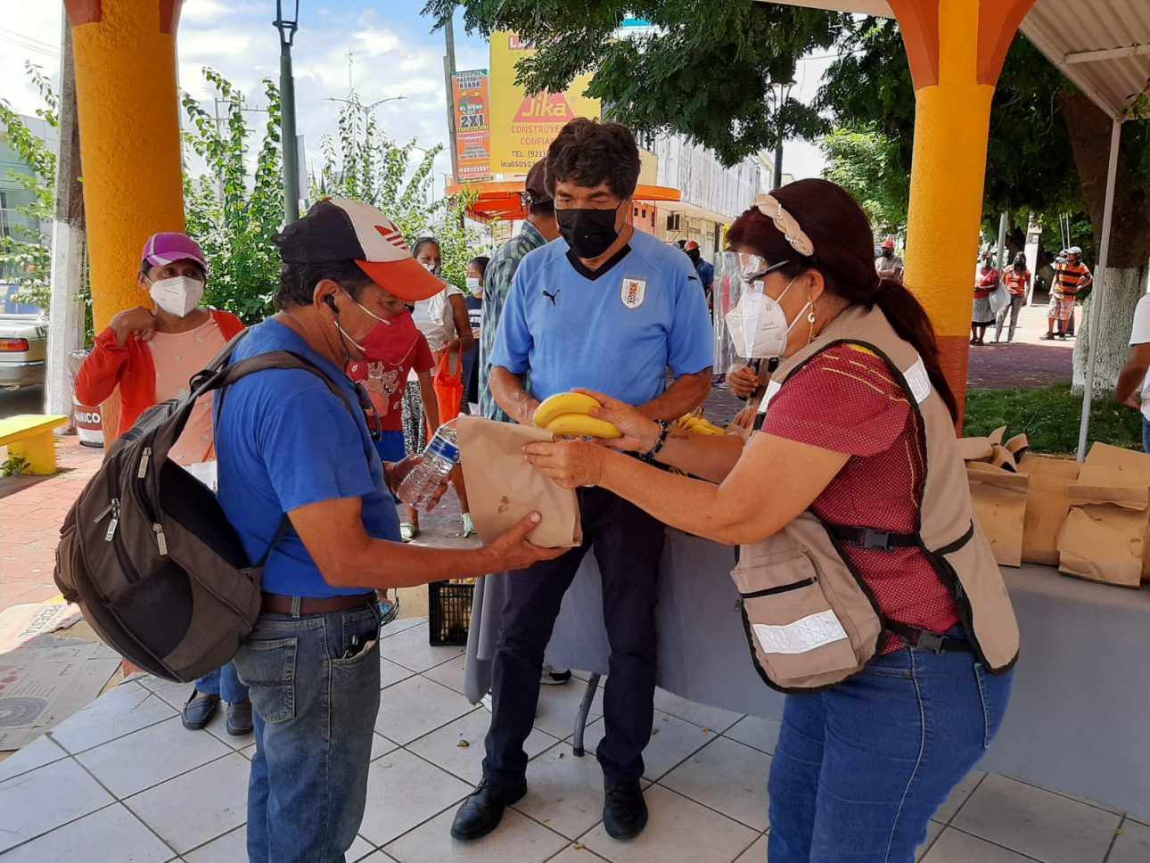 Coatzacoalcos, Ver. Personal de la Dirección de Programas Sociales, a cargo de la Lic. Sandra Collins Coronel, hizo posible hoy una jornada más de la entrega de alimentos para la población en situación vulnerable, guardando todas las medidas de prevención debido a la Tercera Ola de contagios por COVID-19. Fue en la Plaza Santa Cecilia,