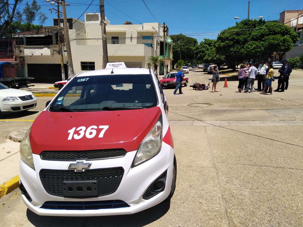 Coatzacoalcos, Ver. El conductor de una motocicleta resultó lesionado al impactarse contra un taxi, que se le atravesó en la esquina de la avenida Cuautémoc y Allende de la zona centro de la ciudad. El lesionado de 35 años de edad, fue auxiliado por paramédicos de la Cruz Roja y trasladado a la misma institución,