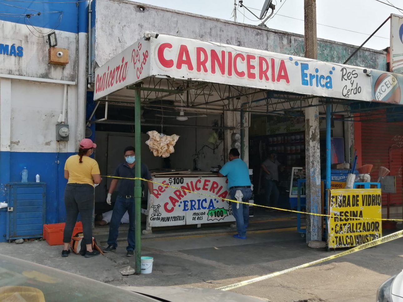 Coatzacoalcos, Ver. El propietario de la carnicería Erica que se ubica sobre la avenida Juan Osorio López casi esquina con Emiliano Zapata en la colonia Francisco Villa, fue ejecutado a tiros durante la tarde de este jueves, debido a que no cedió a las extorsiones de los delincuentes, mediante el llamado cobro de piso. El