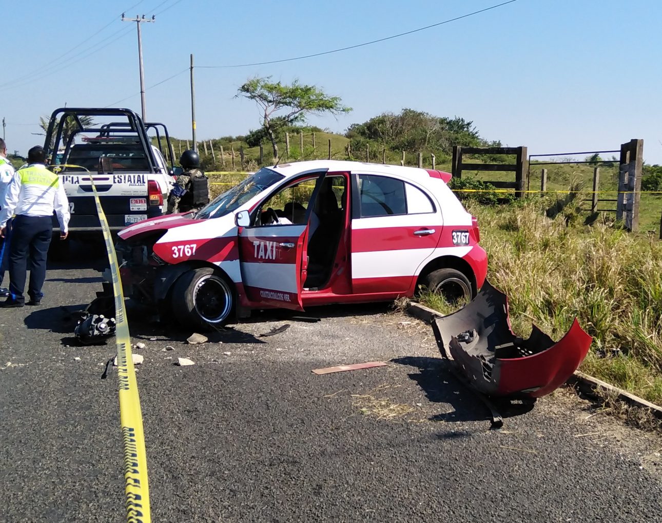 Coatzacoalcos, Ver. Este lunes, un falta accidente se registró en el camino a la congregación de Las Barrillas, donde el taxi marcado con el número 3767, se impactó contra un poste, donde una persona perdió la vida, otra más resultó lesionada, mientras que el conductor quien se encontraba en completo estado de ebriedad, fue detenido