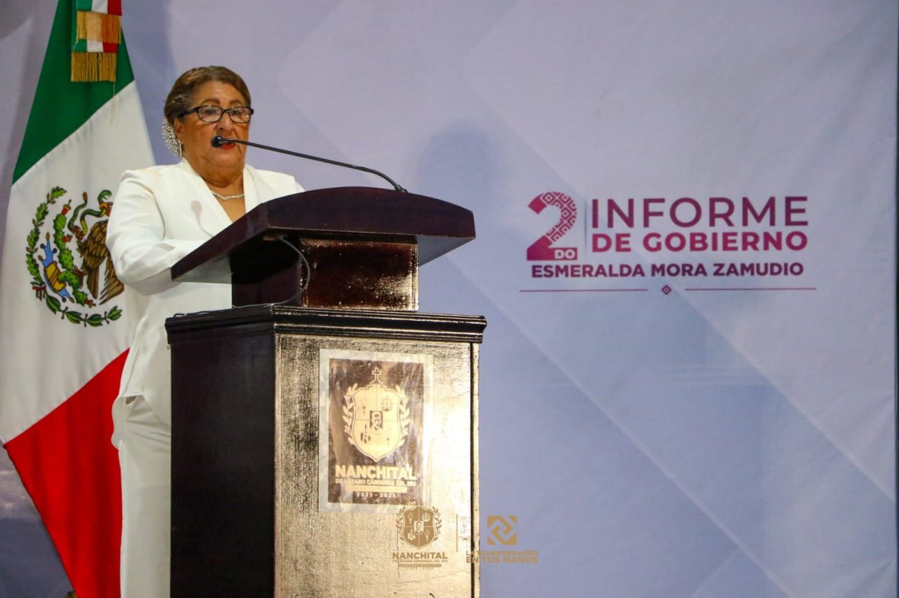 Ademas de presentar las obras y acciones generadas a este segundo año de Gobierno, la Alcaldesa Esmeralda Mora Zamudio anunció las nuevas actividades y beneficios que serán una realidad en el 2024. Antes de finalizar su Segundo Informe ante la presencia de funcionarios, invitados especiales y ciudadanía, la Presidenta Municipal indicó que el próximo año