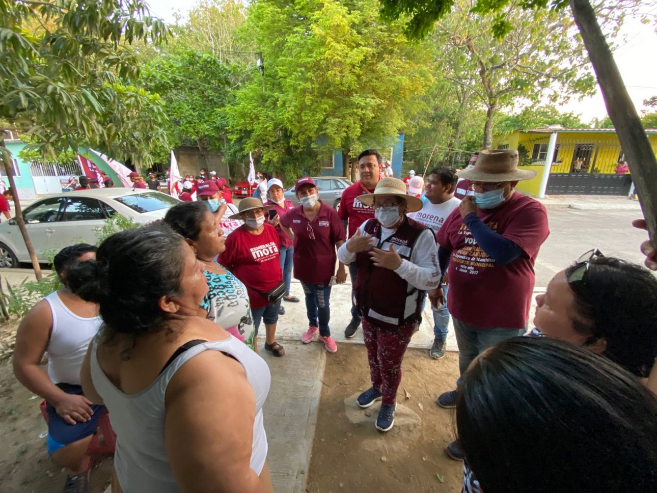 Nanchital, Ver.- De cara a las elecciones del próximo 6 de junio, Esmeralda Mora Zamudio candidata a la presidencia municipal de Nanchital, no ha parado y continúa con sus recorridos por cada colonia y ejido del municipio, pues su meta es llegar a cada uno de los hogares nanchitecos con su propuesta de trabajo y