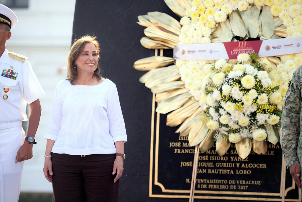 Con una guardia de honor y el depósito de ofrenda floral ante el monumento a Venustiano Carranza, la gobernadora Rocío Nahle García, junto con autoridades de los tres órdenes de gobierno, conmemoró el 111 aniversario de la promulgación de la Ley Agraria. Destacó que su administración impulsa una producción agrícola eficiente y sustentable, avanza en