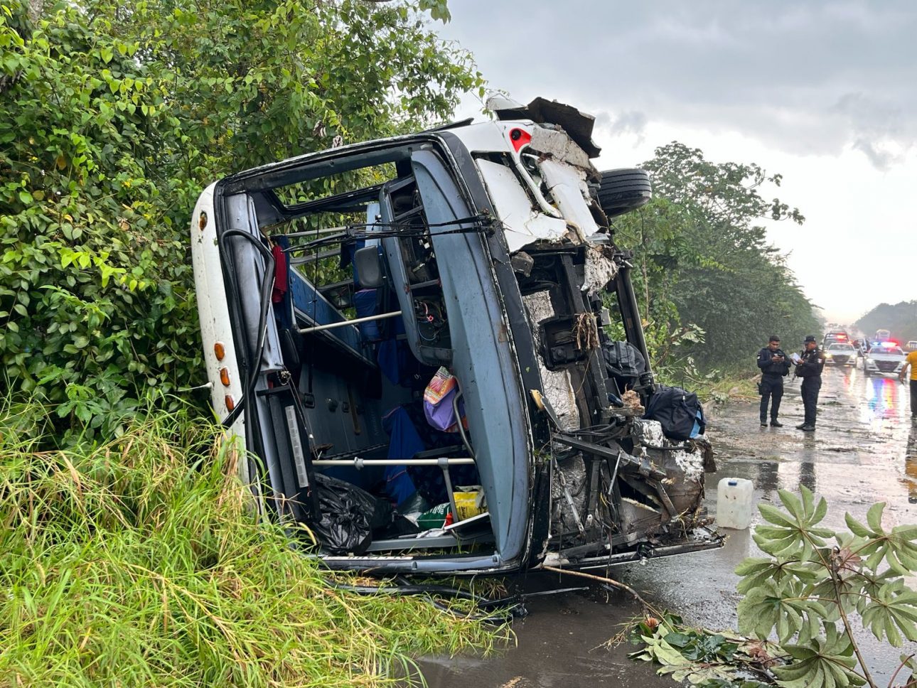 Una persona fallecida y 18 lesionados es el saldo preliminar que dejó la volcadura de un autobús de pasajeros, en la carretera Transístmica. El accidente ocurrió la tarde de este miércoles , en el tramo Acayucan – Jáltipan, luego de que el conductor perdiera el control de la unidad. El autobús de la línea Sotavento,