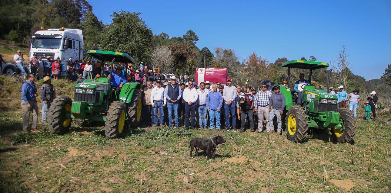 El Gobierno del Estado entregó dos tractores y dos rastras a productores de los ejidos Lerdo de Tejada, Monte de Magueyitos y Tepozoteco, con lo que se impulsará el cultivo de maíz en alrededor de 600 hectáreas. El titular de la Secretaría de Desarrollo Agropecuario, Rural y Pesca, Rodrigo Calderón Salas, destacó que este respaldo