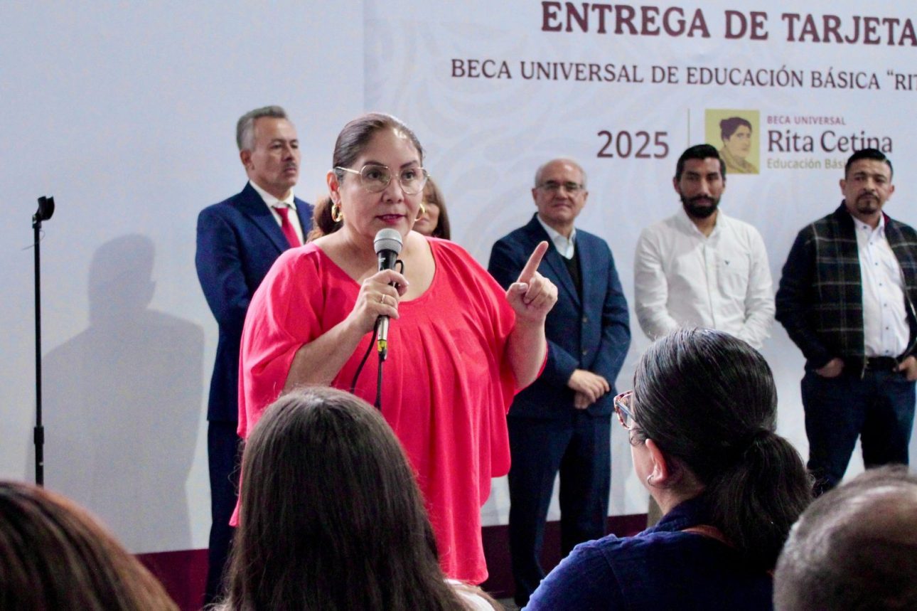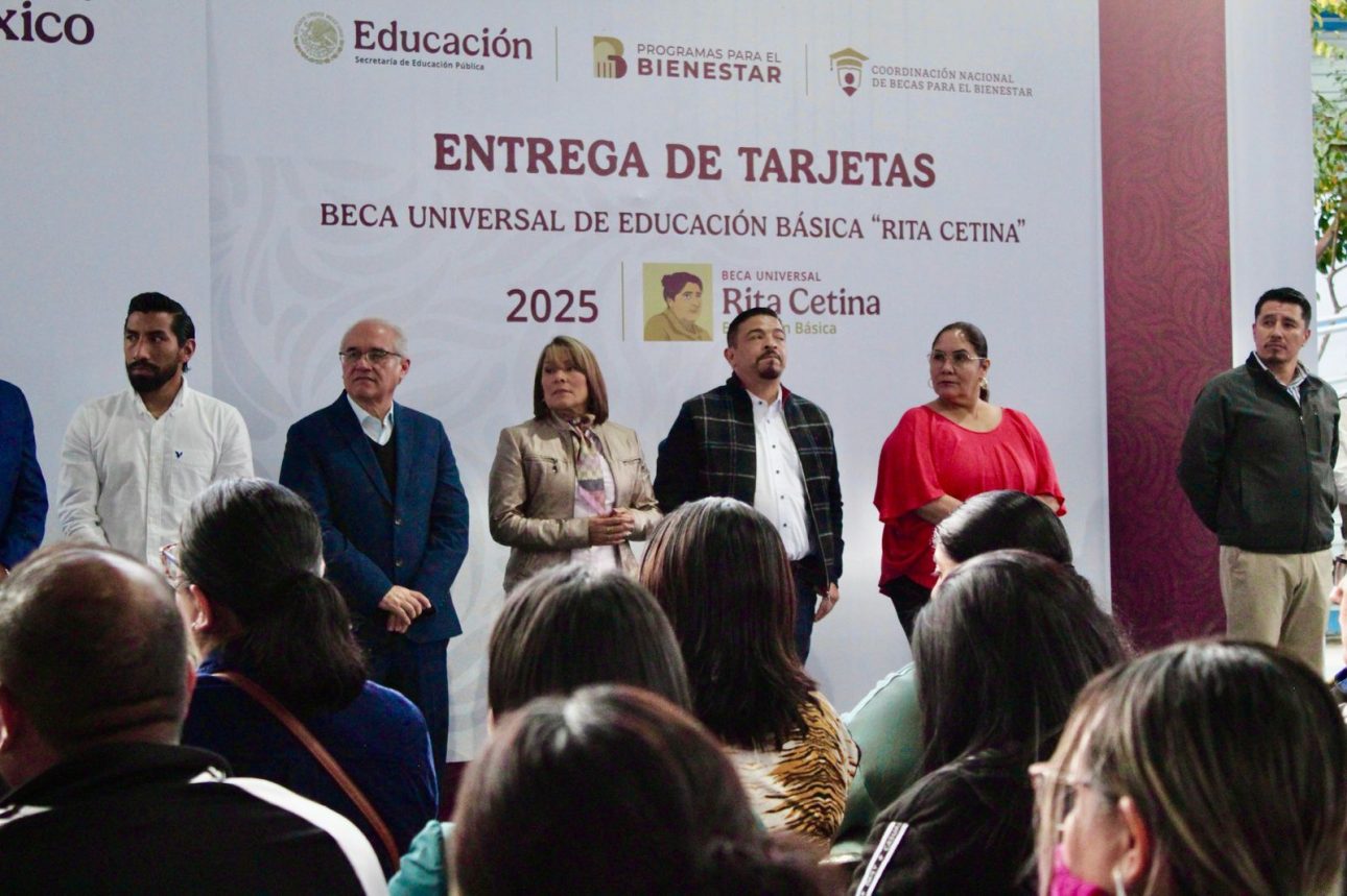 La Secretaría de Educación (SEV) y la Coordinación Nacional de Becas para el Bienestar entregaron mil 470 tarjetas de la nueva beca Rita Cetina a estudiantes de la Escuela Secundaria General No. 5 Manuel R. Gutiérrez, de este municipio. Como parte del impulso a la educación pública y el bienestar de la niñez y juventud
