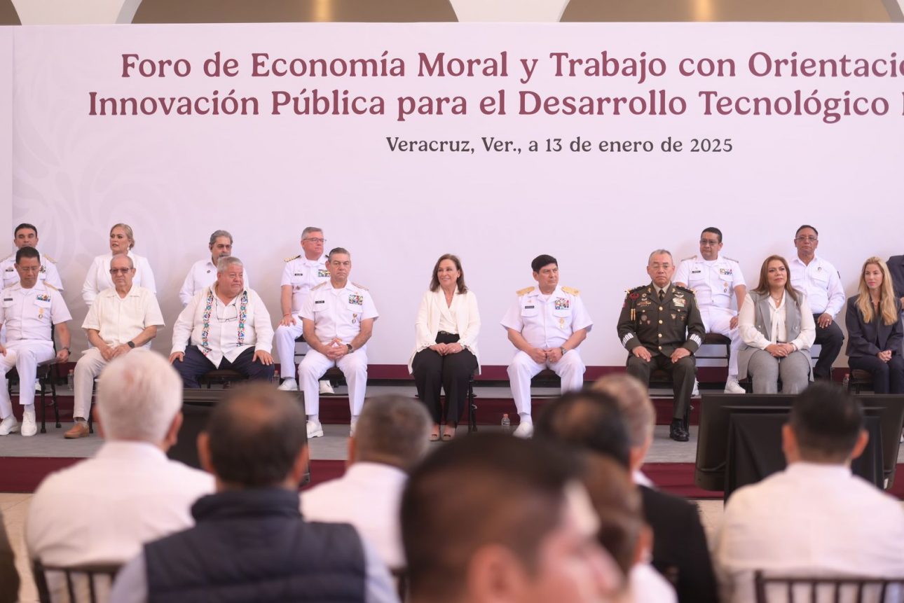 Al inaugurar el Foro de Economía moral y trabajo orientado a la innovación pública para el desarrollo tecnológico nacional, la gobernadora Rocío Nahle García destacó la importancia de un modelo económico basado en principios éticos y de justicia social. En su mensaje, enfatizó que Veracruz cuenta con elementos sólidos para enriquecer el Plan Nacional de