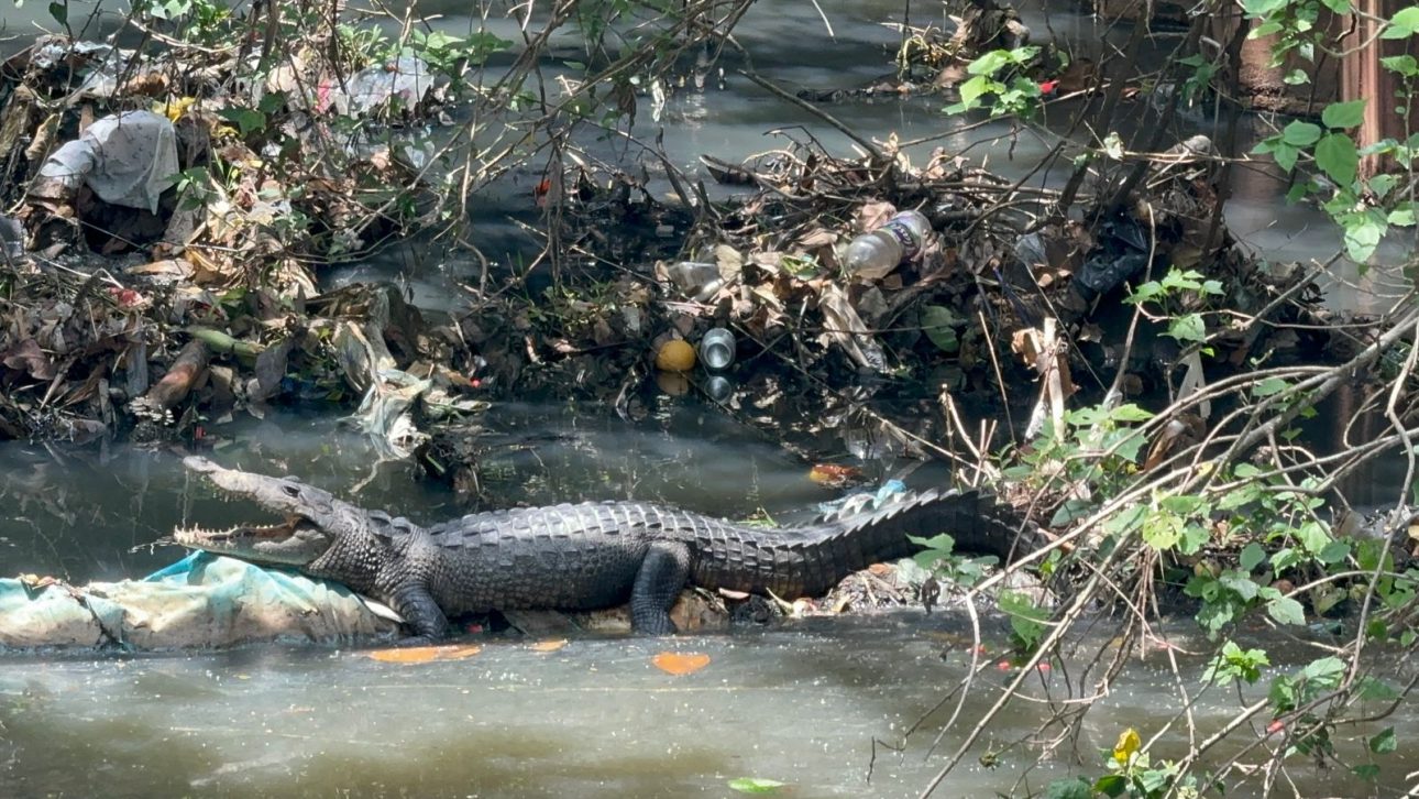 Enrique Burgos. Un grupo de cocodrilos mantienen en alerta a habitantes de la colonia Obrera de Minatitlán. Uno de los ejemplares salió a asolearse este martes, por lo que los vecinos pidieron la intervención de autoridades para reubicar al reptil. Aunque los colonos, también señalaron que al cocodrilo le podría pasar algo más grave, pues