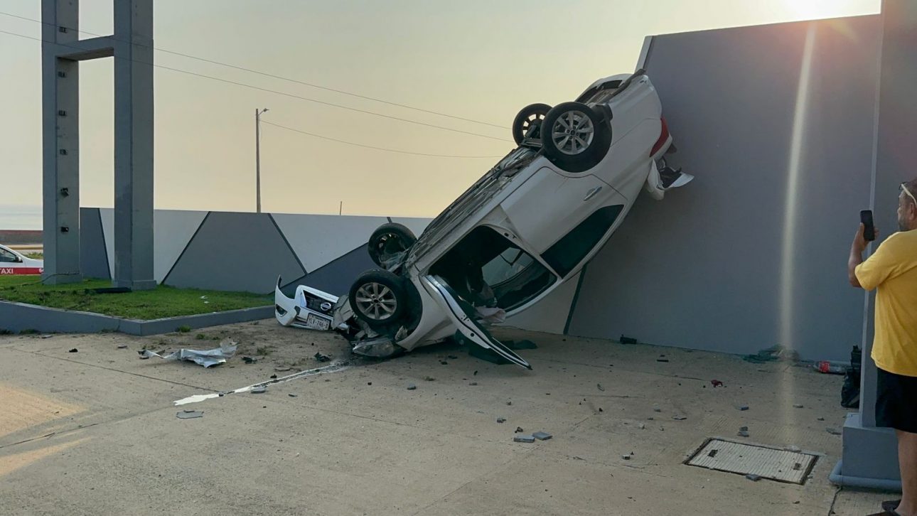 Enrique Burgos. Un automóvil terminó volcado en el estacionamiento de la barda de Plaza 10 4 de Coatzacoalcos. El hecho se presentó la mañana de este lunes poco antes de las 7 de la mañana en el cruce de la avenida Abraham Zabludovsky esquina con malecón costero de la colonia Pensiones. De acuerdo con la