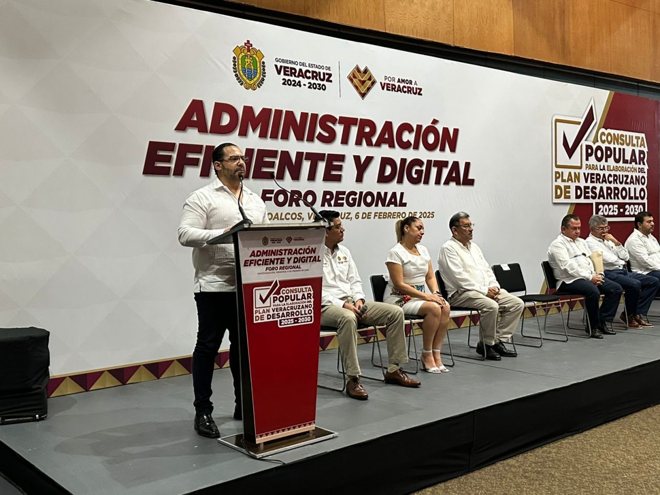 Enrique Burgos Se celebró en Coatzacoalcos el Foro Regional de Participación Ciudadana del Plan Veracruzano de Desarrollo, impulsando la administración eficiente y digital. En representación de la gobernadora de Veracruz Rocío Nahle García, el subsecretario de egresos en Sefiplan, Pedro Miguel Rosaldo, aseveró que el modelo de trabajo de la administración actual se ha basado