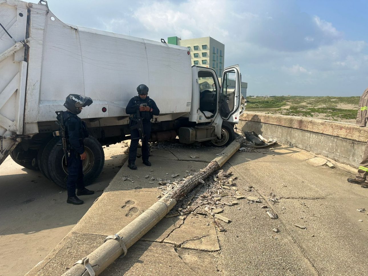 Enrique Burgos Un camión de limpia pública se quedó sin frenos en el malecón de Coatzacoalcos y se estrelló contra un poste de alumbrado público, el accidente dejó tres trabajadores del departamento lesionados. El hecho se registró cerca de las 11:00 de la mañana de este miércoles a la altura de la calle Primero de
