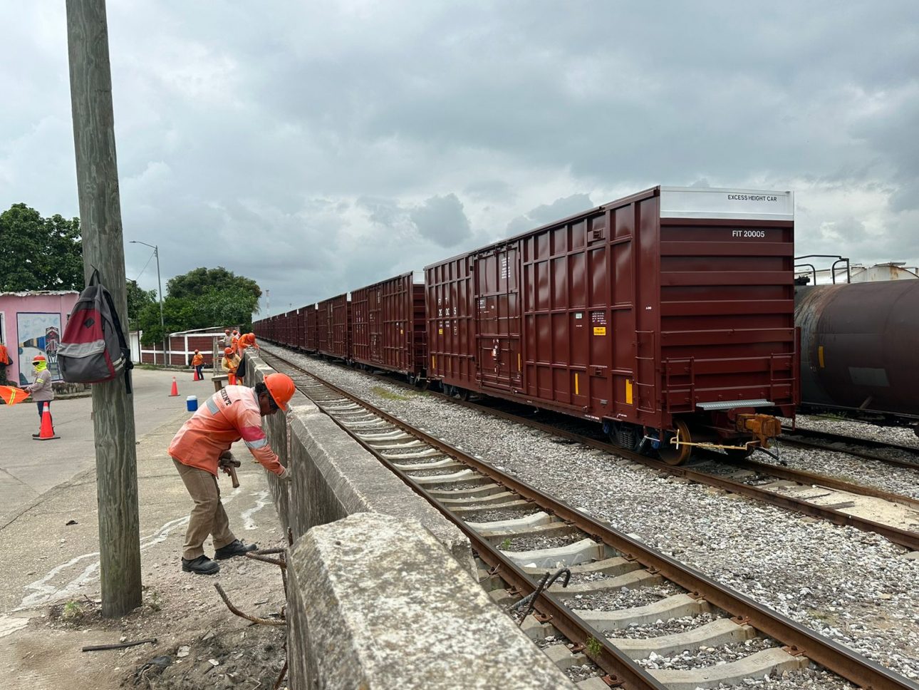 Enrique Burgos Continúan los trabajos de construcción de la barda perimetral del Ferrocarril del Istmo de Tehuantepec (FIT) en Coatzacoalcos como parte del Corredor Interoceánico del Istmo de Tehuantepec (CII). En este caso el muro será superior a los tres metros y brindará mayor seguridad a la mercancía que se traslade desde Salina Cruz, Oaxaca