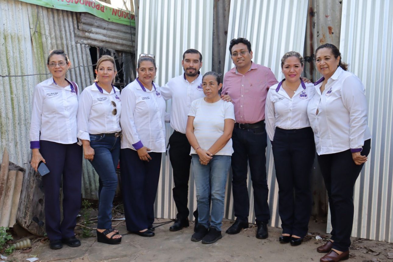 Gracias a las gestiones realizadas por el Gobierno local a cargo de Amado Cruz Malpica, en conjunto con el DIF Municipal que preside la señora Esther Mortera Zetina, este fin de semana doña Veronica Ocampo Rodríguez recibió atados de láminas para reconstruir parte de su humilde vivienda que colapsó en días pasados. El director del
