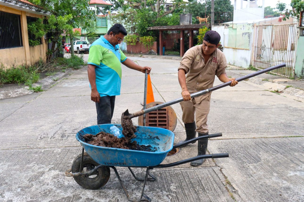 Personal del Ayuntamiento de Nanchital inició esta mañana con los trabajos de desazolve de drenajes en la colonia San Miguel Arcángel, como parte de su cronograma de actividades preventivas de encharcamientos e inundaciones. Luego de atender las calles y callejones del primer cuadro de la ciudad, los empleados se trasladaron este día a la colonia