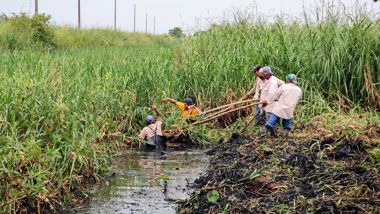 Atendiendo el llamado de la población, esta mañana personal del Ayuntamiento inició los trabajos de limpieza en el extenso canal a cielo abierto, ubicado cerca de la ex terminal de autobuses, en la entrada de la ciudad. Debido a la dimensión de este cauce, en los próximos días se continuará laborando en el mismo, de