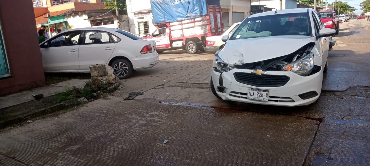 Dos vehículos particulares chocaron en la esquina de la calle Pánuco y Fortín de la colonia Progreso y Paz, donde no se reportaron personas lesionadas solo daños materiales, por un monto que estima rebasa los 50 mil pesos. Las unidades que se impactaron fueron un automóvil Volkswagen, tipo Ventó, de color blanco, con placas de