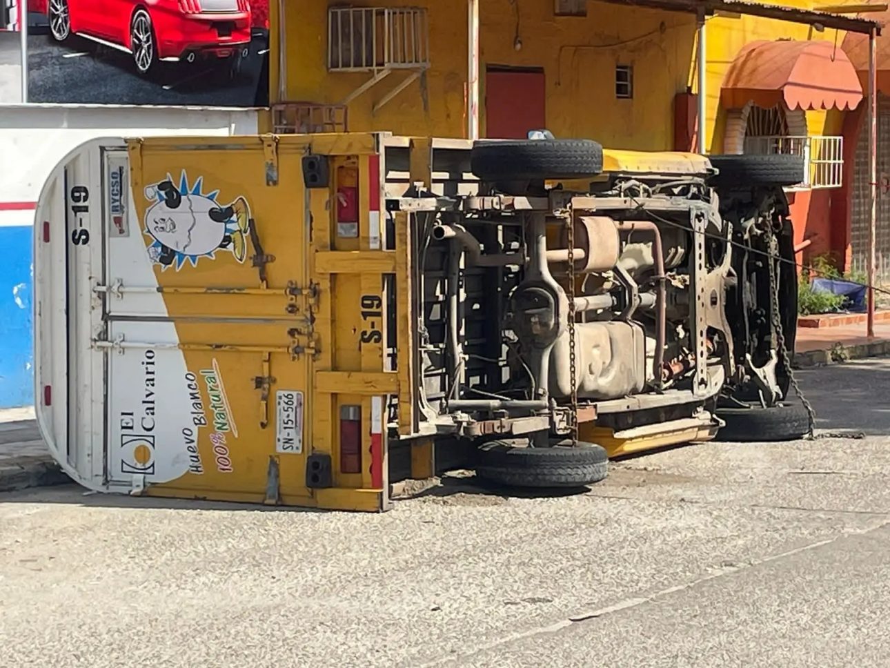 Minutos después de haber sido robada, una camioneta de la empresa de huevos “El Calvario” terminó volcada sobre la calle Emiliano Zapata de la colonia Insurgentes Sur, en el municipio de Minatitlán, al sur de Veracruz, durante la mañana de este martes 11 de julio. Primeros reportes de las autoridades indican que dos sujetos se