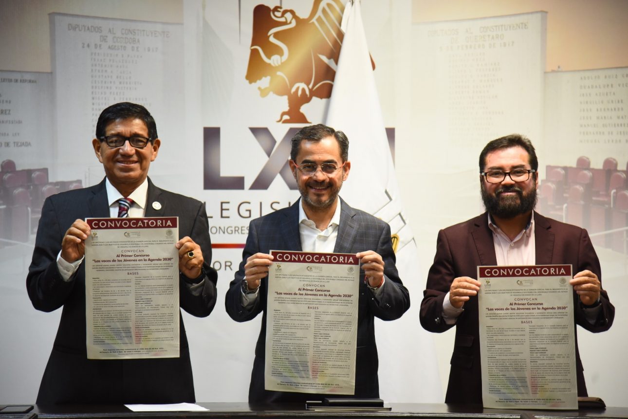 La Comisión Especial para el Seguimiento de la Agenda 2030 y los Objetivos de Desarrollo Sostenible, presidida por el diputado Luis Antonio Luna Rosales, dio a conocer la Convocatoria para el Primer Concurso denominado Las Voces de los Jóvenes en la Agenda 2030, con lo que jóvenes veracruzanos tendrán la oportunidad de presentar propuestas, por