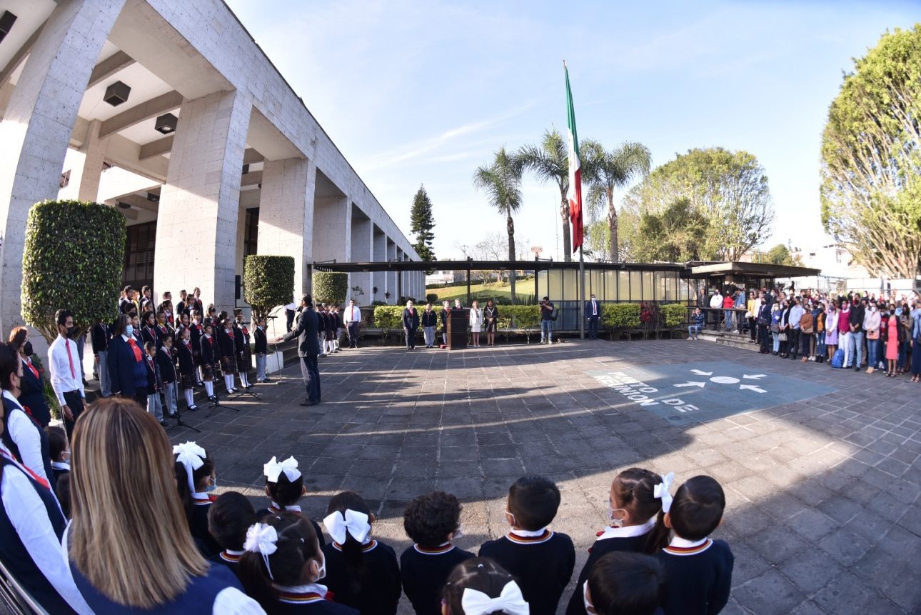En vísperas del Día de la Bandera y con la finalidad de promover los valores cívicos en las niñas y los niños, este jueves 23 de febrero el Centro Escolar Liceo de Xallapan realizó en la explanada del Palacio Legislativo un acto cívico conmemorativo a la fecha, con la participación de alrededor de 150 alumnos